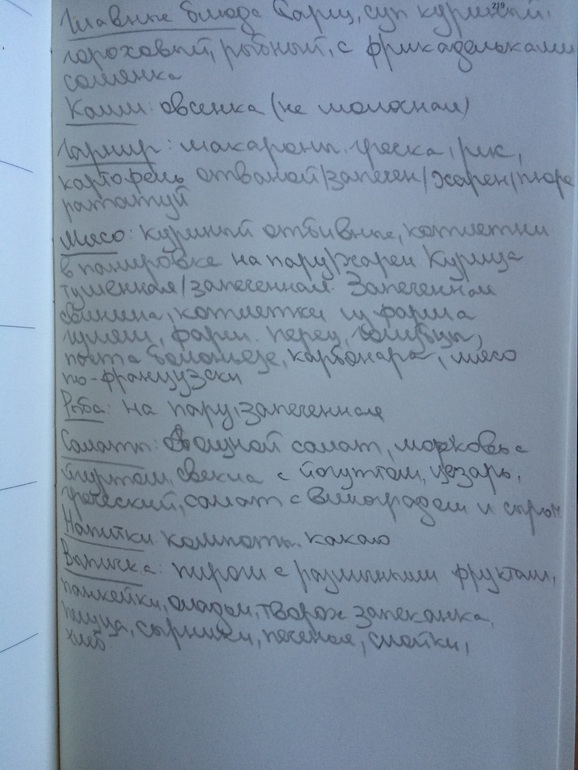 Написала свое основное меню, для меня это печально( Считаю что очень скудно. Я конечно подозревала, но когда полностью все написала очень расстроилась.