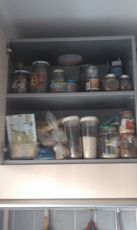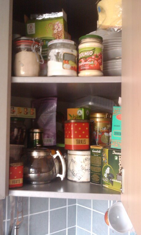 До кладовки-антресоли так и не добралась. У нас кухня 6 квадратных метров, поэтому запасы круп, сахара мы храним там. Ну и хлама там хватает. Постараюсь завтра.