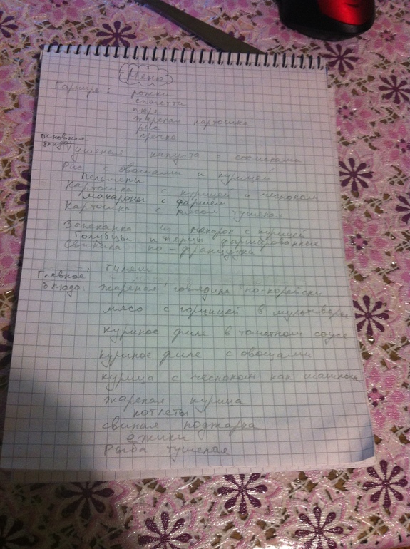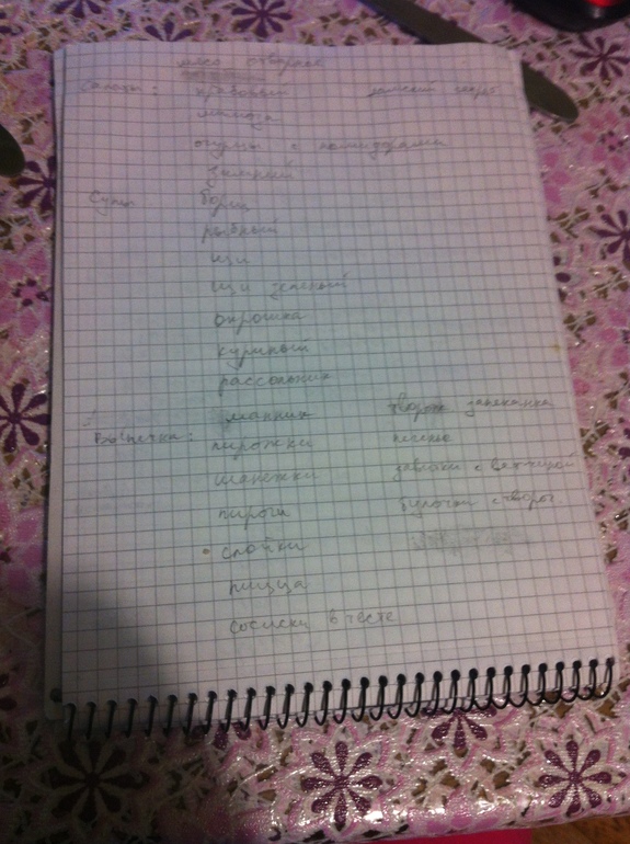 Отчитываемся по заданиямБазовое меню составила карандашиком, т.к. то одно вспоминается, то другое. Как куплю тетрадь для рецептом, так и перепишу уже в красивом виде это меню.