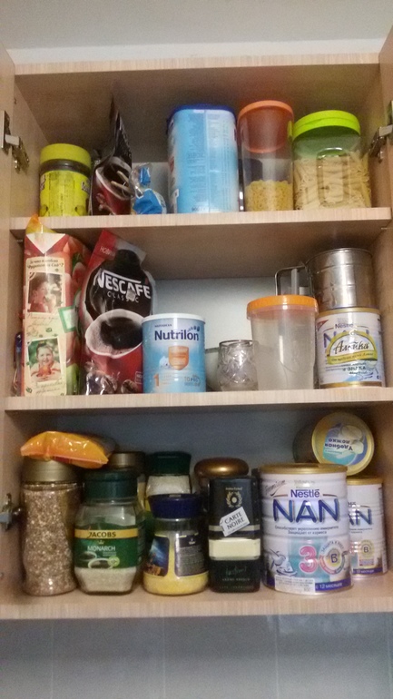 Выкинулось куча пакетов, баночек и нашлись баночки которые для специй оставляла, можно и там порядки наводить.