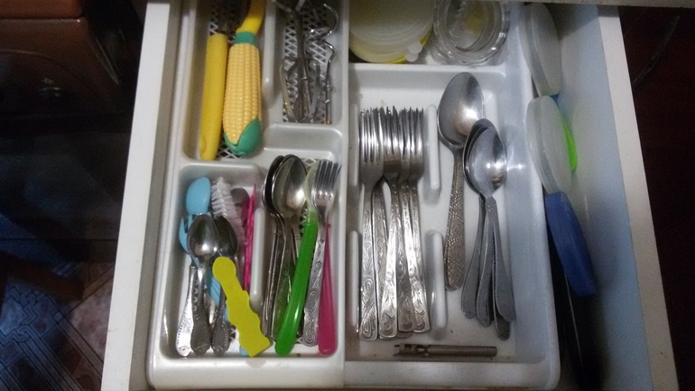 Ложки и вилки тоже отлично , есть место даже для кофейных