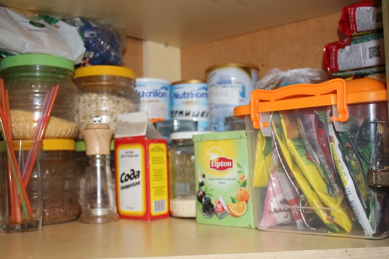 все приправы сложила в один пластиковый контейнер, он большой, думала будет громоздко, но по сравнению с тем бардаком который в шкафу творился это вообще несравнимо