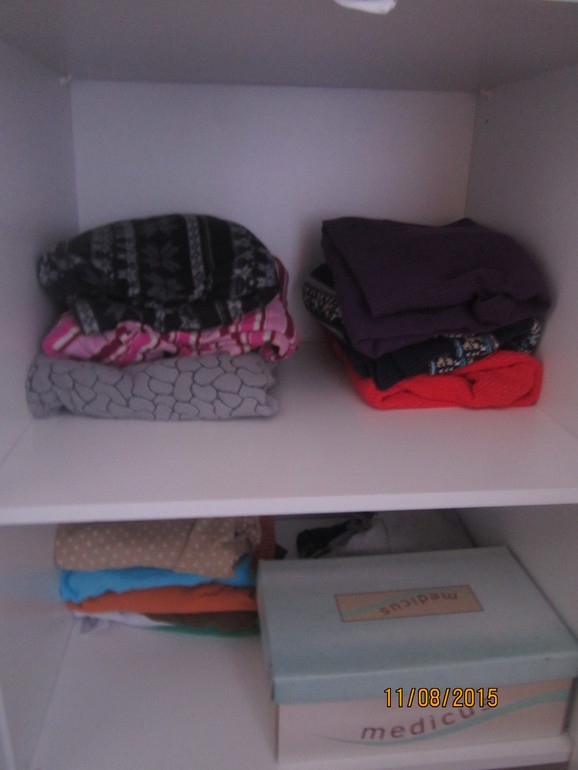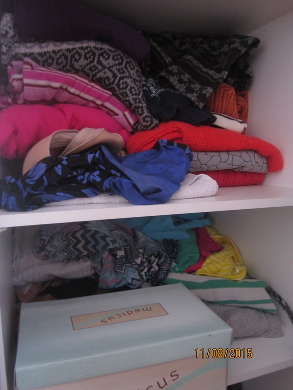 Отчитываемся по заданиямРешила начать разбор одежды со своей. Сегодня успела перебрать одежду только на 2 полках, на которых хранятся свитера, а также футболки. В коробке сложено нижнее белье. Вот как это выглядело