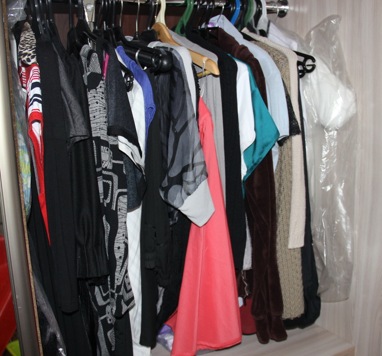 Около месяца назад я своим умом (а может что-то и натолкнуло) я дошла, что мне надо выкинуть свой гардероб. У меня было очень много вещей, от 44 до 54 размера. Ага... вот такая я гармошка. Они были повсюду, естественно носилось из этого единицы. Я оставила только, то что мне по размеру, то, что в хорошем виде и то что нравится. Единственное, сложила совсем немного очень любимых вещей, какие не выходят из моды, меньшего размера (я сейчас нахожусь в процессе хужения) в коробку и убрала на чердак с пометкой на коробке и в ежедневнике достать через полгода.
