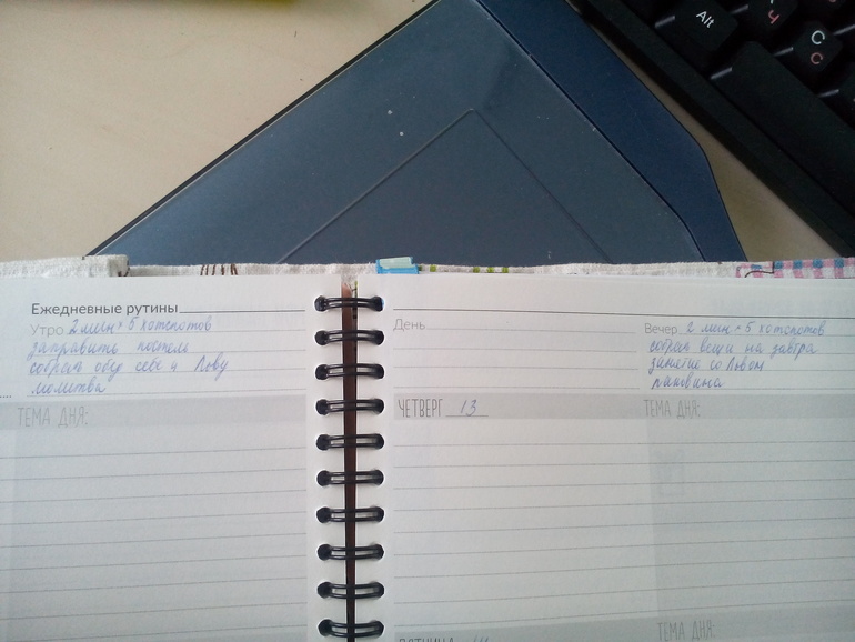 Отчитываемся по заданиямРутины записала, правда по своему. Не захотелось писать что-то вроде умыться и почистить зубы. В общем, не стала писать то, что само собой разумеется. Написала то, что делать надо, но еще не вполне вошло в привычку. Но список еще в процессе) На следующей неделе можно будет написать его заново- место под рутины у меня есть на каждой неделе.