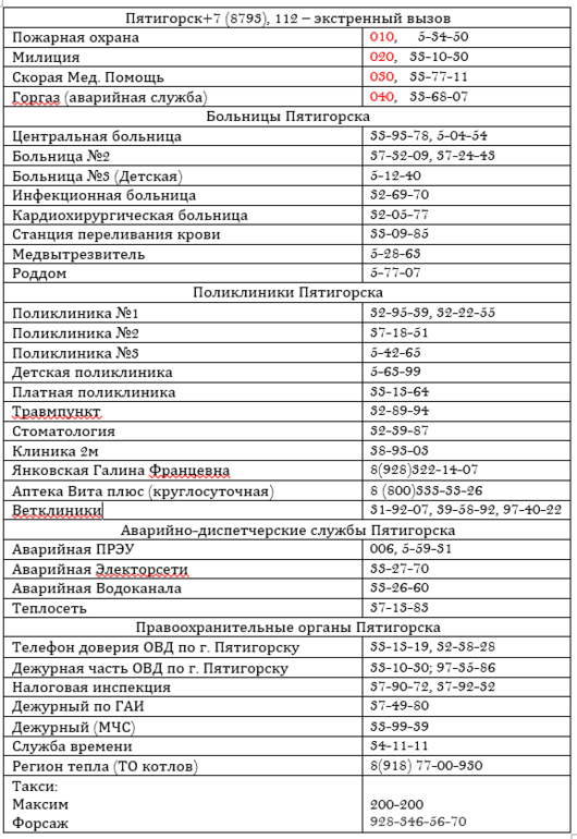 План я себе распечатала. Вложила в КЖ, вклеила даже. Список телефонов тоже составила. Вот и он: