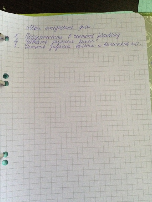 Для КЖ я выбрала тетрадь на кольцах. Она старенькая, еще с института, но очень мне дорога. Туда же я записала свои ежедневные дела. Вот она: