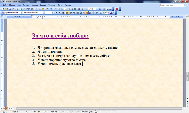 Отчитываемся по заданиямС любовью к себе всегда складывалось не очень. Но то то хорошее во мне все же есть. Просто прячеться где то глубоко. В журнале я написала, что я хорошая мать, может на самом деле это не так, но я очень стараюсь ею быть, потому что мои дети на это заслуживают.