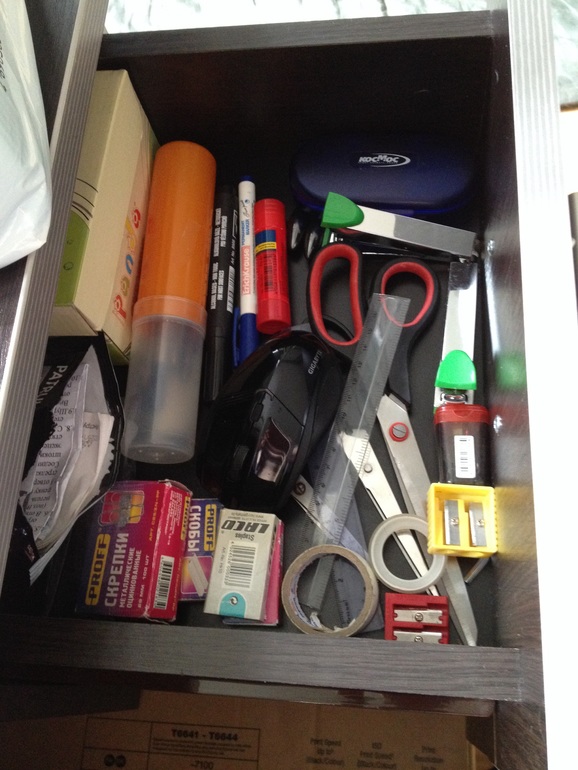 Сегодня выбрала для расхламления ящики в письменном столе. Фото первого ящика ДО не сделала. Есть ПОСЛЕ: