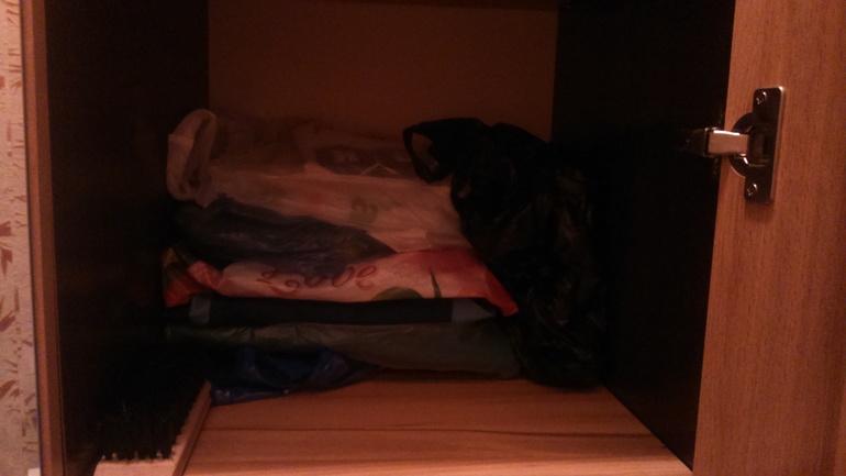 у меня с пакетами так же, постоянно складываю, а то как муж залезет,все кувырком.
