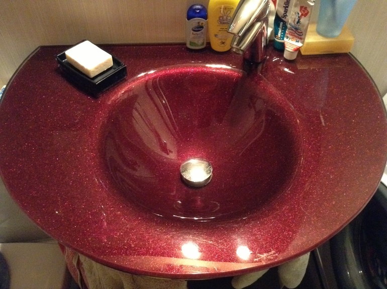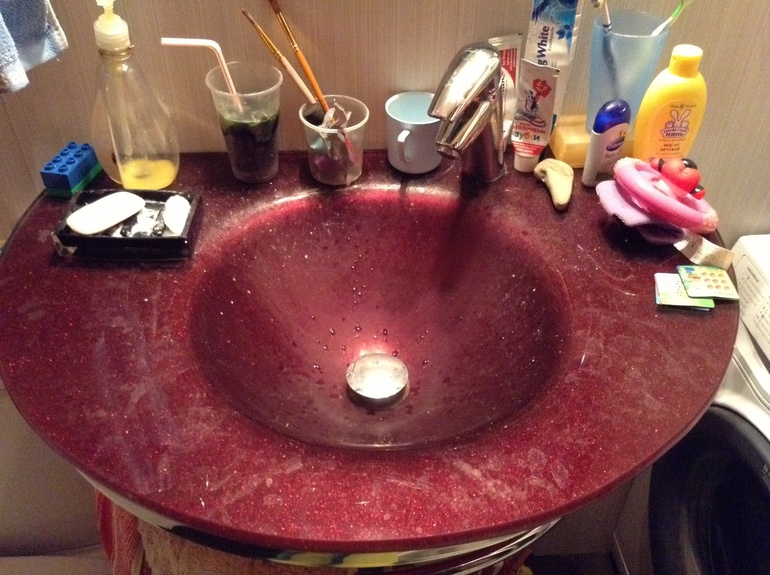 действительно эффектная раковина! у меня, кстати, на полотенцесушителе висит специальная тряпочка, я ею вытираю стены и смеситель и периметр ванны после душа, с раковиной то же самое - вытираю смеситель, по бокам от него и по периметру, что бы не было капель, а потом налета от жесткой воды. В отличае от раковины на кухне - это уже на автомате.
