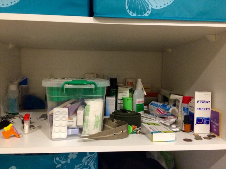 ХС я занялась только ближе к обеду, но разобрать их мне так и не удалось в течение дня, а сделала я это только несколько часов назад. Выкладываю сразу "до" и "после". 1 ХС, называется "Домашняя аптечка":