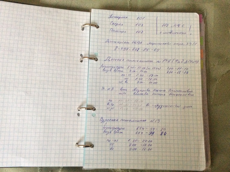 3) телефоны родителей/ друзей/ моей работы