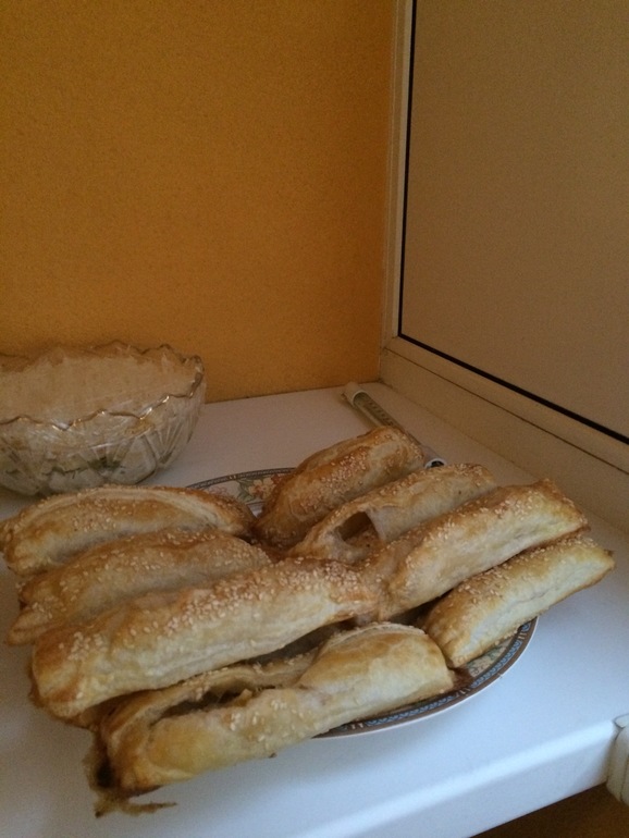 штрудель, почистила картошку, доделала оливье, поставила в мультиварку на отложенный старт рулетики из индейки.