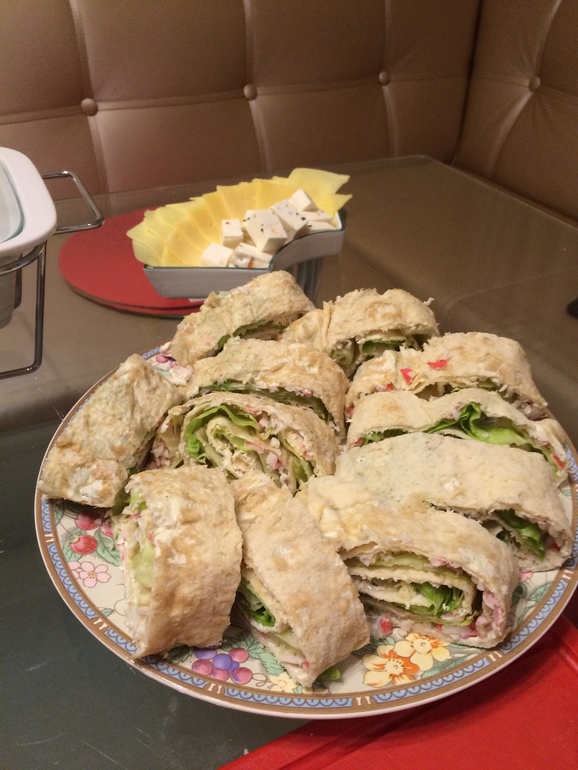 штрудель, почистила картошку, доделала оливье, поставила в мультиварку на отложенный старт рулетики из индейки.В 12 покормила сына обедом и к часу он уснул. Пока он спал я порезала рулет из лаваша,