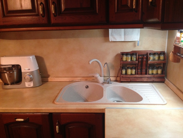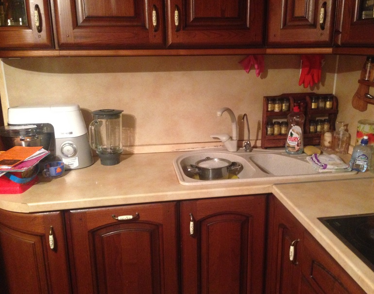 Вообще, люблю когда рабочие поверхности абсолютно ничем не загромождены, только тогда достигаю абсолютного дзена)),но кух.машину девать некуда, да и пользуюсь ею каждый день. Набор специй решила в ближайшее время заменить/убрать. Так что пока как-то так.