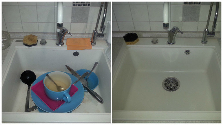 Задание первого дня выполнено успешно. Заодно помыла и раковину в ванной (она у нас проблемная, если долго не мыть, будет засада)