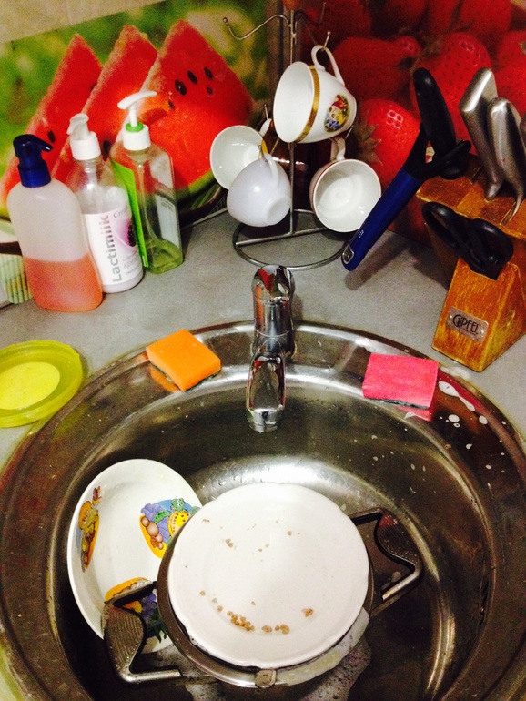 Итак утро началось поздно, спали до 8 часов. Встали, попросила мужа поставить вариться кашу, сама пошла в душ, краситься, одеваться. Нарядной проходила 15 мин, потом сын вылил на меня кофе, пошла переоделась , проводили папу на работу, позавтракали, помыла посуду, помыла, вытерла раковину,
