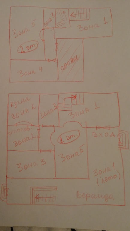Пересмотрела план. Скорее всего комнату в зоне 3 на первом этаже отнесу к зоне 4. Т.к. это тоже спальня.