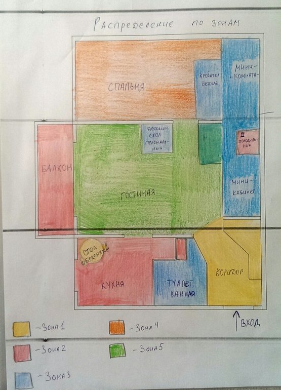 Зоны. Фото вставляю. Не знаю, Оля, описывала долго. Но все стерла - на фото все видно. зачем лишнее читать?😄 Там только комод детский не подписан (не пишет ручка по мелку). Вроде все..![]()