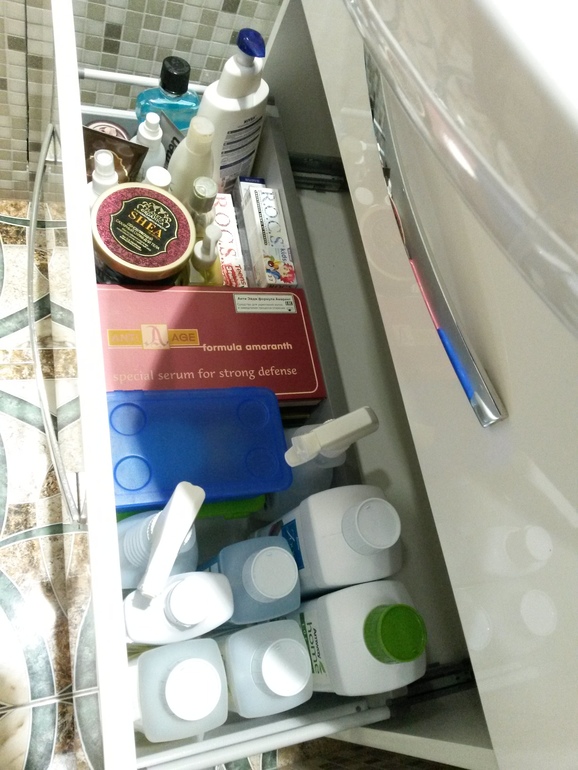 Из расхламления я все же осилила ящики под раковиной в ванной. Даже нашлось что выкинуть))