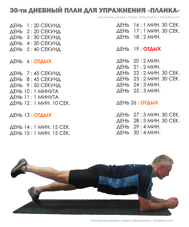 ООО планка, я делаю её каждое(!) утро на голодный желудок, пока только 45-50 сек, не больше и тело реально дрожжит Надо её ещё пару раз добавить в течении дня и боковую тоже, спасибо за картинки!!! Скопировала!!!