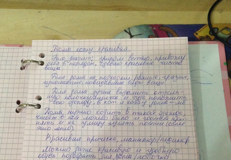 На кольцах с разноцветными листами. В начале пишу основные моменты из задания. В конце тетради пишу свои записи по этим дням, очень удобно, все в одном месте.