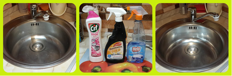 вот мои помощники - и вид раковины до и после...