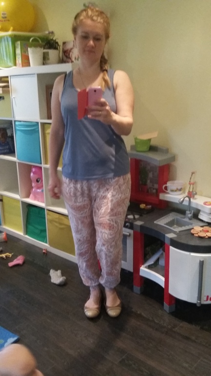 Гардероб перетряхиваю периодически, все надеюсь на минимум. Домашние комплекты такие домашние, что в них никогда я не выйду на улицу, но принять подругу в гости или курьеру открыть могу без зазрения совести. Предпочитаю штаны и майки или платья. Преобретаю специально для дома одежду. Но пока донашиваю несколько беременных вещей. ))) Придут в непотребный вид сменю на что-то новое.