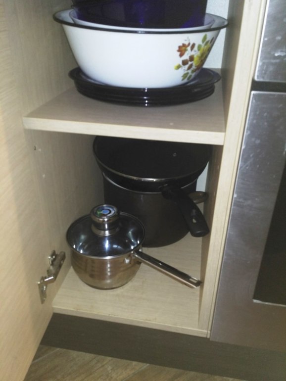 (это место кастрюль/сковородок сейчас, еще есть кастрюля-сковородка, вторая маленькая кастрюлька и маленькая сковородка, всем пользуемся)