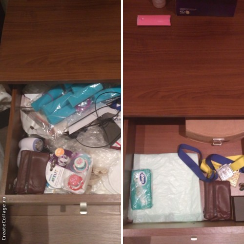 Расхламляться сегодня не было времени, поэтому взяла простенькую работу - свою прикроватную тумбочку. Туда сваливалось не глядя все с момента рождения дочки - первые полгода после родов я была в жутком недосыпе и неадеквате. Соответственно и нашлось много чего - лекарства, старые дочкины соски и всякие прибамбасы для первых месяцев после родов, книги о беременности, мои украшения, даже фата, которую я когда-то заказывала на свадьбу, но она не подошла, а продать не получилось. Сегодня выкинула больше, чем 27 предметов, хоть и по мелочи. Остальное в основном отправилось на свои места. Остались только вещи, которые я хочу там держать (украшения, салфетки) и вещи, которым я пока не придумала места (медали мужа, коробочка с флешками, маленький кошелек для путешествий). Про вторую полку и сказать нечего - освободилось место для новых вещей :)