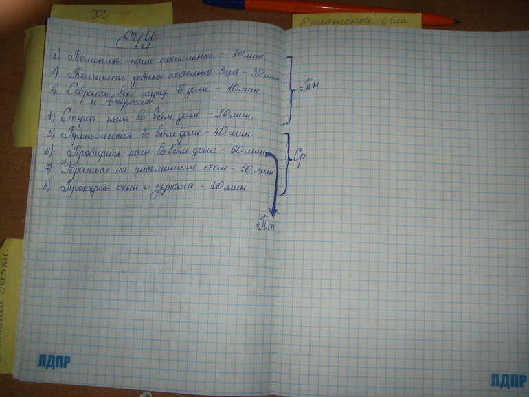 Собрать весь мусор в доме и выбросить - 10 мин.