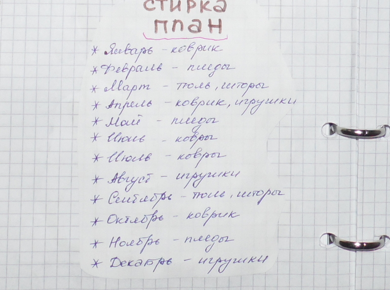 Список сезонной стирки