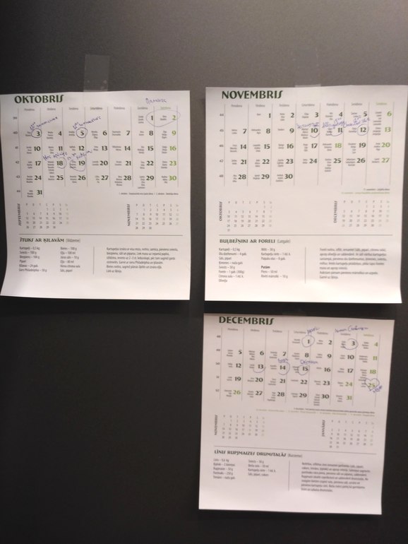 Календарь мне удобен на 3 месяца вперед. Сюда вписываю походы по врачам, дни рождения близких, гимнастику ребенка, походы в салон, встречи с друзьями и т.п. Обычно у меня больше 1 события в день не бывает. Муж на календарь внимания не обращает, поэтому пишу только для себя. Ну и удобство такого готового календаря в том, что сразу видно, на какие дни недели выпадают гос.праздники и когда у кого именины (у латышей они так же важны как и дни рождения, невежливо не поздравить какого-нибудь знакомого или коллегу).