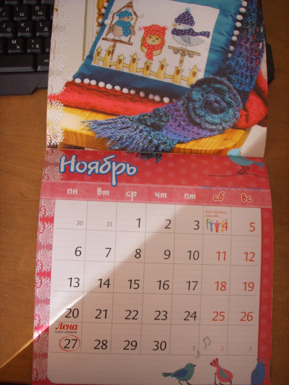 Купила красивый календарь на новый год, думаю подойдет как семейный, в нем есть место для записей. А на остаток этого года просто расчертила на листочке в клетку.