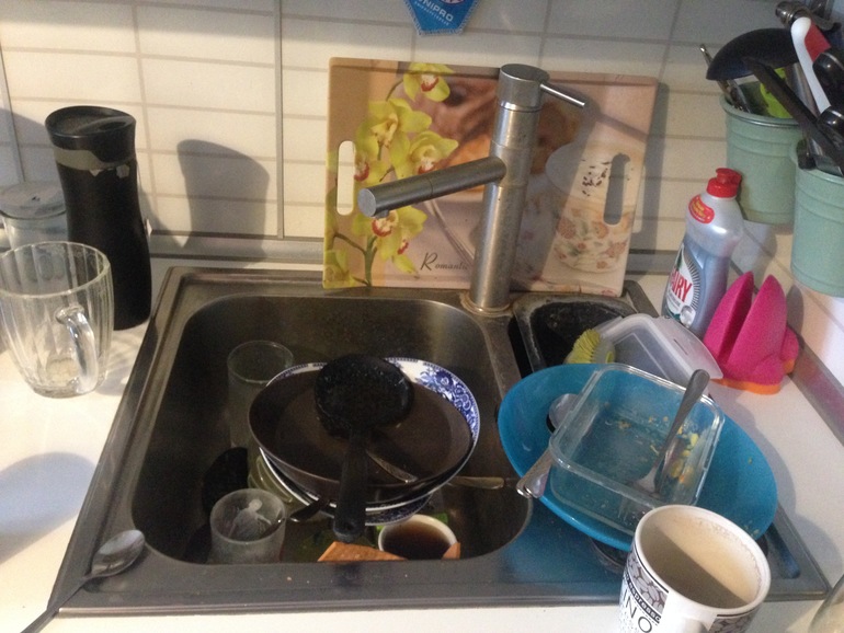 Итак моя "утренняя раковина" - оставляет желать лучшего, муж вчера вернулся с работы поздно, ужинал и, конечно, посудомойку не загрузили, печальная картина, конечно.