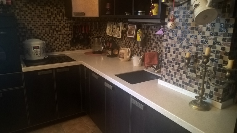 Поэтому, просто хорошо помыла столешницу, картинку "после" вставлять не буду, там все равно не разглядеть изменения, а стоит все так же, только мультиварку убрала внутрь шкафа, не нравится, когда она стоит на столе, если без дела.