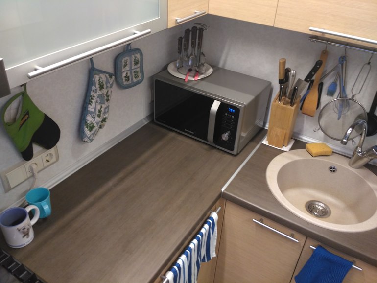 Пока на микроволновке работает таймер, прибираюсь на кухне.