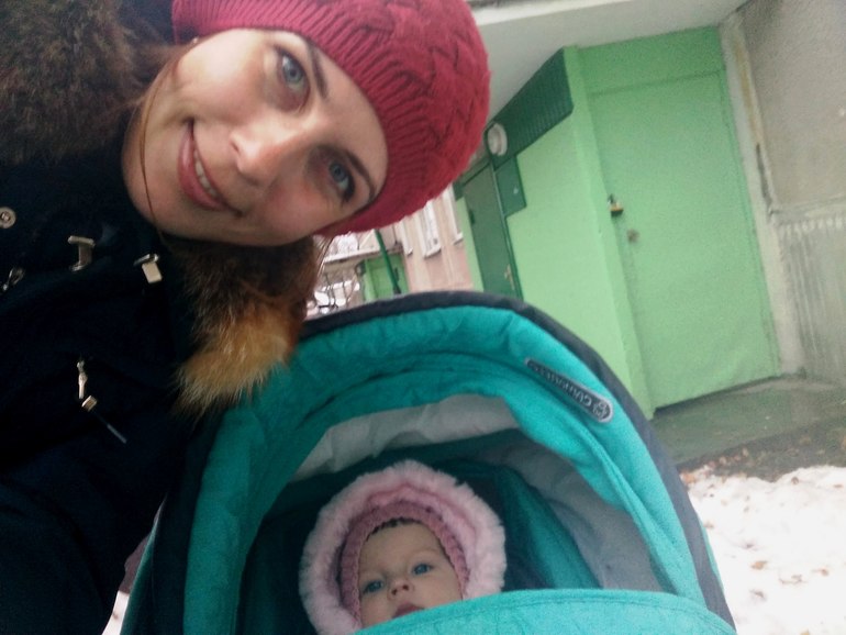 Перехватываю одну быстренько. Нам уже пора на прогулку, потому что после 13.00 маленькой по режиму положено спать.