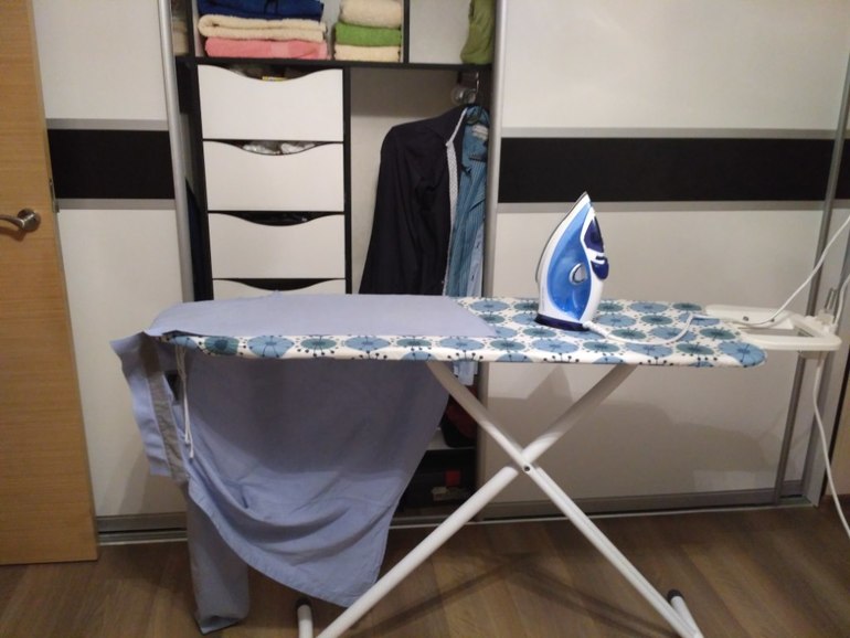 Пора бы и поработать. Быстро мою полы по всей квартире (кроме детской). А теперь - глажка. У меня всего 5 рубашек и 2 полотенца, справляюсь меньше чем за полчаса.
