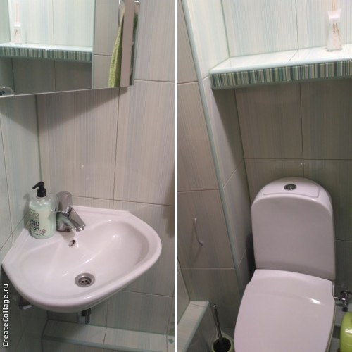А я - в прихожую, сушить и укладывать волосы. Потом макияж. Макияж я делаю в туалете, там удобный зеркальный шкафчик. Заодно провожу "полет с ершиком".
