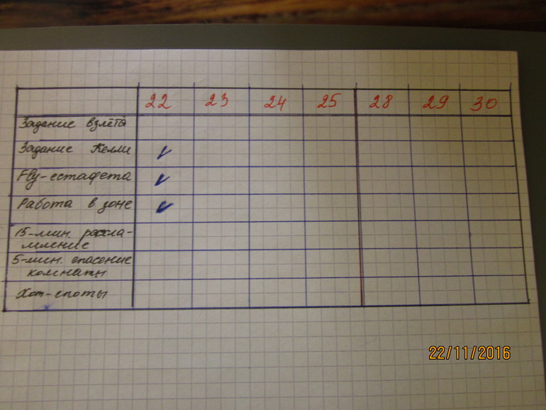 Еще сделала себе такую табличку, чтобы не путаться что я уже сделала и что еще предстоит, расчертила до конца месяца, на декабрь надо будет сделать такую же