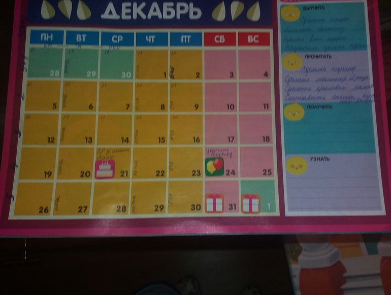 Кстати, хочу поделиться с вами, что нашла очень удобный календарь для семейных и моих личных записей там, где не ожидала. Случайно у мамы. В сентябре бабушка купила дочке "Календарь школьника с наклейками". Естественно она еще мала для него, просто на кассе понравился. Он с наклейками. есть место для пометок. и для записей желаний и планов на месяц. классная штука.