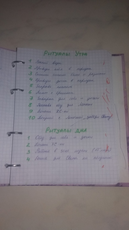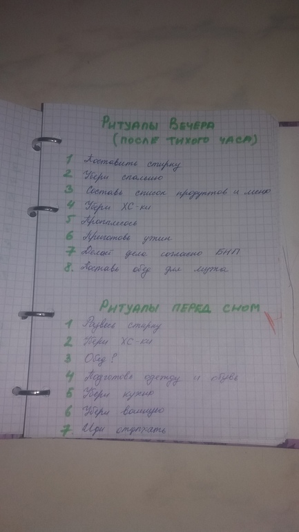 КЖ не особо пользуюсь, но все, что там должно было быть записано, там есть. единственное чего там не было - Это списка рутин. Точнее какой-то список рутин там был, но я же над ним работала каждый день, т.е. каждый день я пыталась определить какие дела мне нужно делать ежедневно и не забывать об этом, а так же в какое время это удобнее делать. Несколько раз садилась писать рутины свои, но понимала, что еще не готова их определить.