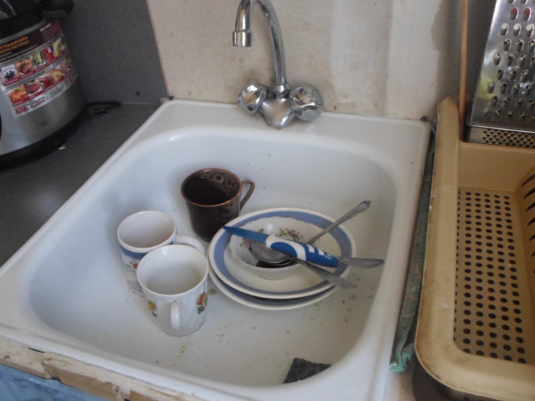 Под раковиной у меня мусорное ведро, не сфоткала, но помыть-помыла)