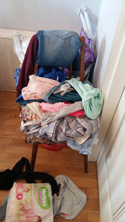 По вчерашнему дню я не разобрала старые вещи, так как они вперемешку с уличными и лежат комом у меня на полке. А не разобрала, так как из-за перемены погоды у меня сносит крышу (болит голова). Да, все так ужасно... но ничего, прорвемся.