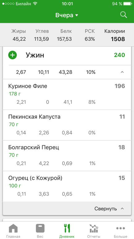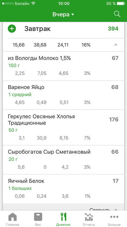 Это мы сделаем один раз, что бы полностью разобраться, как надо делать правильно и сколько мы должны съедать в течении дня. При расчете используем все продукты в сыром виде.