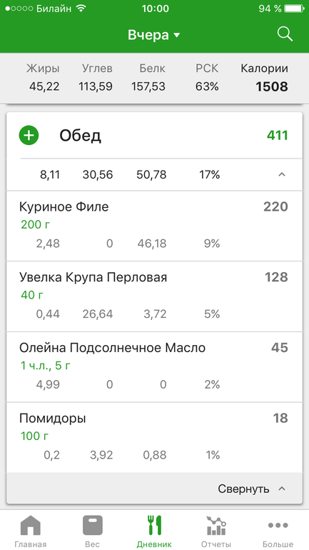 5. Рекомендуемые источники углеводов: гречка, бурый рис, геркулес, макароны из твердых сортов (не чаще 2 раз в неделю), чечевица, кускус, хлебцы зерновые, нут, фрукты до 200 грамм в день (лучше яблоки и грейпфрут) Как же рассчитать правильно и не запутаться. Можно использовать любое приложение для подсчета КБЖУ (например : Fat Secret )