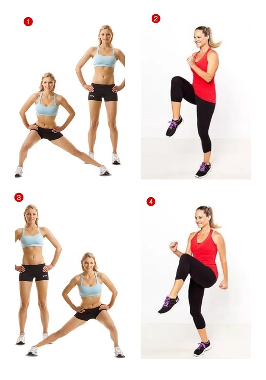 4. Выпады в сторону с подъемом колена к груди (6 повторений)