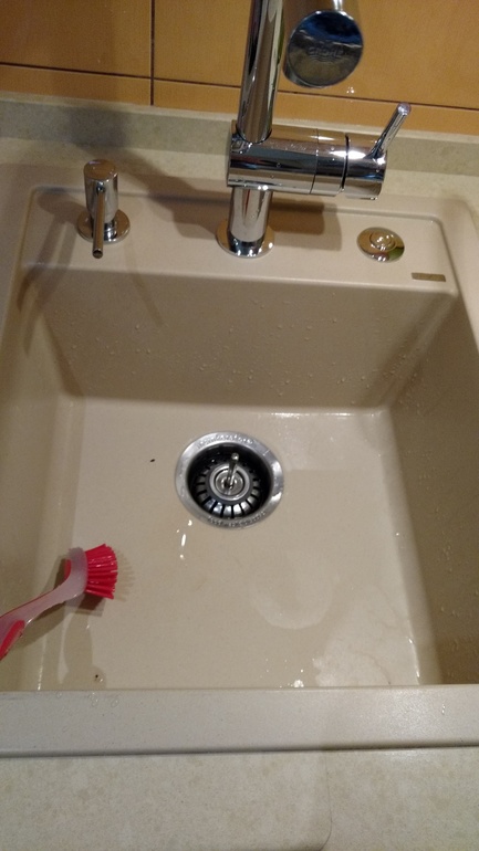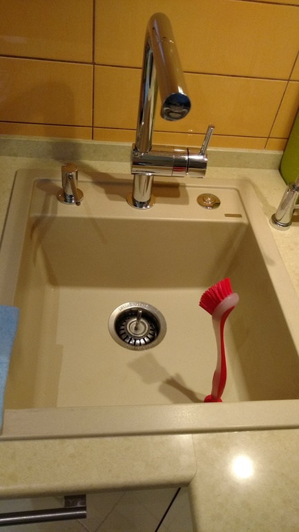 Раковина до(пардон, чистила ее в воскресенье после нашествия на кухню Ночных Бабаек 😄 ) и после: